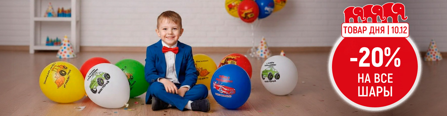 Товар Дня на 10 декабря 2025 года - весь ассортимент воздушных шаров со скидкой 20%. И это ваша лучшая возможность сделать выгодную закупку самого ходового товара впрок. Пополните запасы шаров всех цветов, форм и размеров по специальной цене, чтобы быть полностью готовыми к предстоящим праздникам, мероприятиям и регулярным заказам.