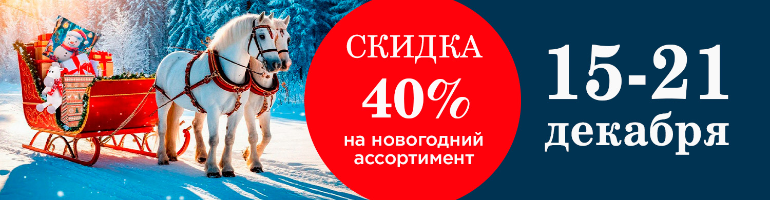 На этой неделе со скидкой в 40% вы можете приобрести новогодний ассортимент. В том числе: